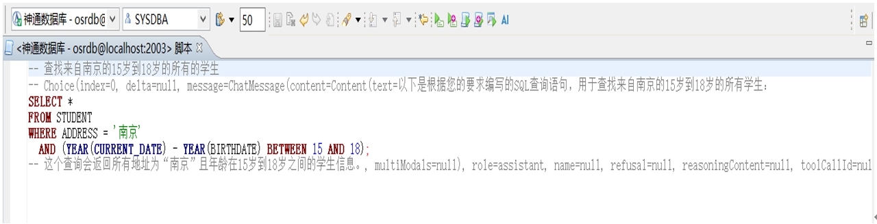 為進(jìn)一步賦能企業(yè)高效利用數(shù)據(jù)資源,神通數(shù)據(jù)庫的DBStudio工具中引入了DeepSeek能力改寫了原有的AI智能補(bǔ)全功能,使用者能夠以對話的便捷方式,將自然語言無縫轉(zhuǎn)化為SQL及復(fù)雜查詢語句,這一功能徹底扭轉(zhuǎn)了以往數(shù)據(jù)庫交互依賴專業(yè)編碼的局面,升級為“全民對話”的模式,大大降低了企業(yè)數(shù)據(jù)驅(qū)動能力的技術(shù)門檻。
